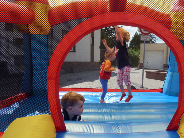 Bereitstellung einer Hüpfburg. Die Kinder wussten