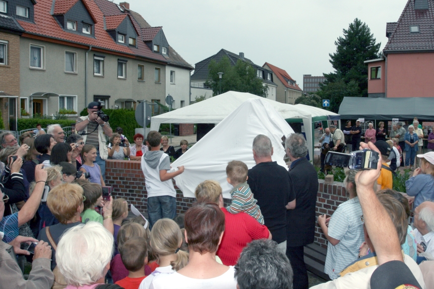 neue Plastik gesammelt. Geschaffen wurde sie von der Bildhauerin Christine